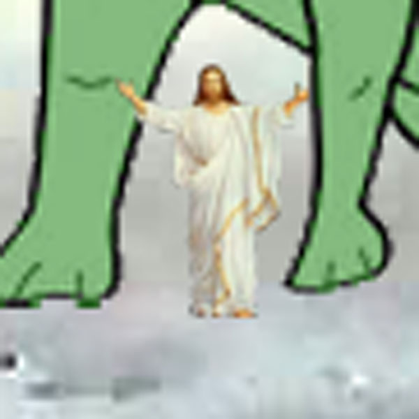 Close-up of long-necked plant-eating dino feet containing supposed image of Jesusaur.
