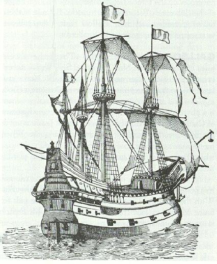 This is a Galleon. Galleons were used during the golden age of piracy, the late 17th to early 18th century, since they could be used as both a treasure ship and a war ship. For their size, they were very fast. Spain used these a lot to carry treasure back and forth. Well, mostly back. To Spain, that is.
