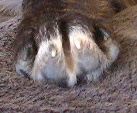 Um, do you know what a dog is? Because if you know what a dog is, you’d know that dogs do not have thumbs, so therefore a real dog doing a thumbs up is nigh on impossible. Here’s a picture of a real dog’s foot, namely my dog’s. Notice the lack of thumbs: