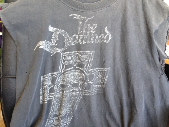 His mom told me about a box of his stuff she brought to the memorial. I forgot to look through it before I left. Everyone decided that I should have his Damned shirt, his oldest and most treasured piece of clothing from his first ever punk show when he was thirteen. I don’t know what to do with it, but it’s mine now, along with his ugly lamp. It’s all I have left.