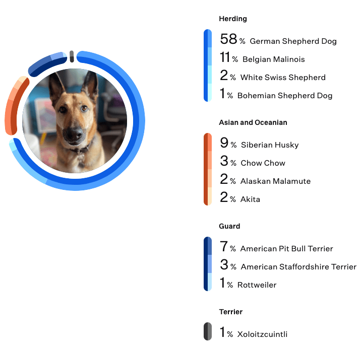 Of course, surprising no one, she is mostly German shepherd. But, she also has 11 other breeds in her DNA, some of which I’d never even heard of before.