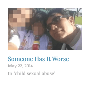 Yesterday, I wrote about discovering that the pedophile who abused me has died. At the bottom of that post, there’s a section called “Related” where my blog pulls things I’ve written in the same vein and I saw this one:
