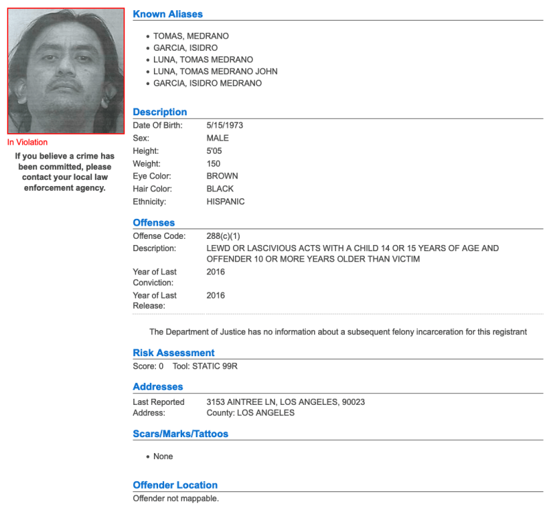 Ah, but the justice system might say, he may not serve much prison time, but he has to register as a sex offender for life… OK, let’s see what the sex offender registry has to say then.