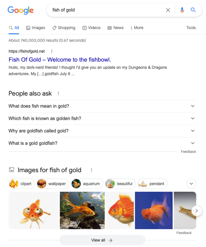 I scrolled way, way down past all of me to see what other “fish of gold” things the internet offers and I found a few things.